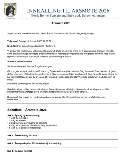 Innkalling årsmøte NBSK avd. Bergen og omegn 2026